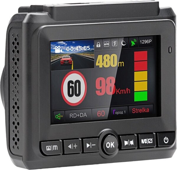 Radar detector, max. video recording resolution: 2304×1296, design: conventional, number of cameras: 1, shock sensor G-sensor, screen, viewing angle diagonal: 140 °, built-in microphone, recording mode: cyclic, processor: MStar 8328P, time and date record