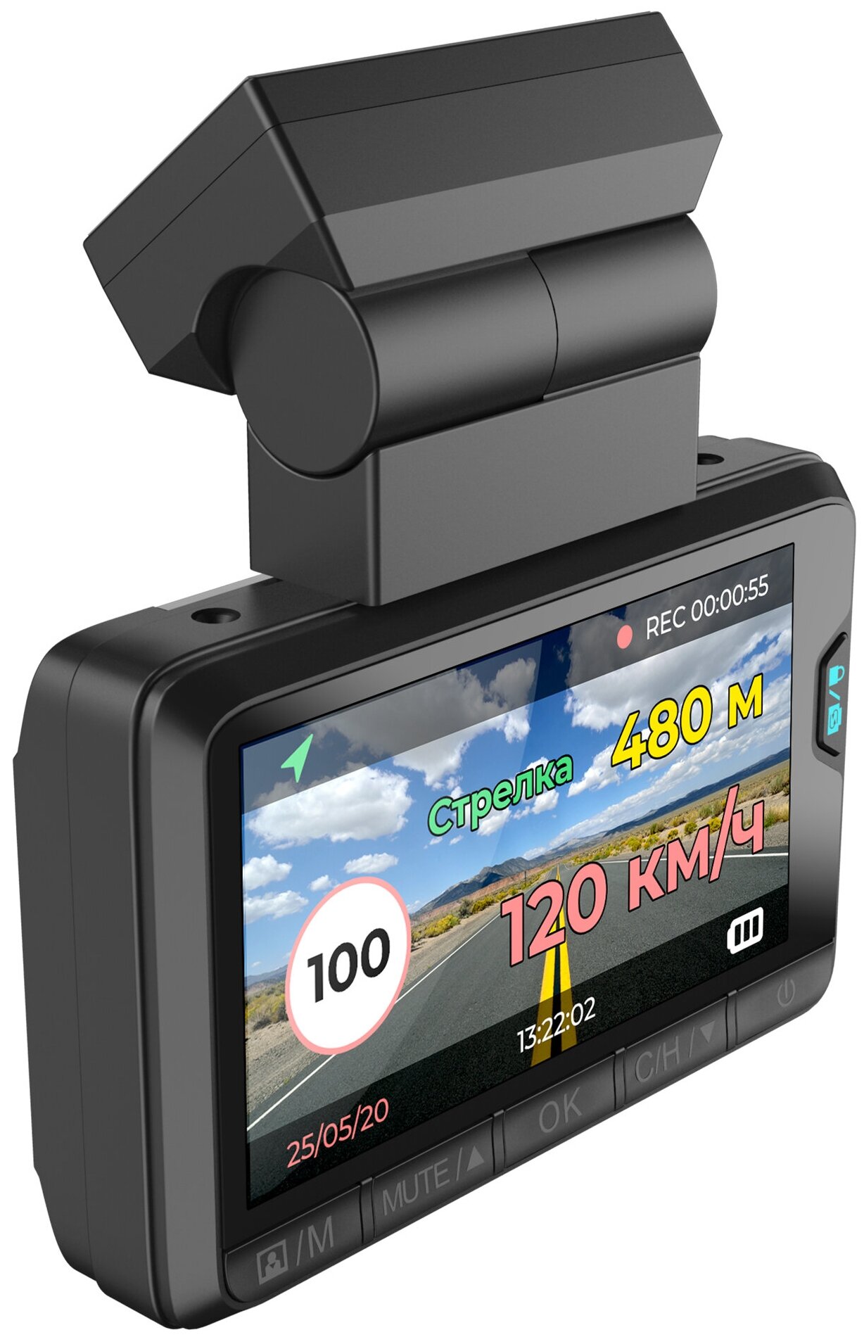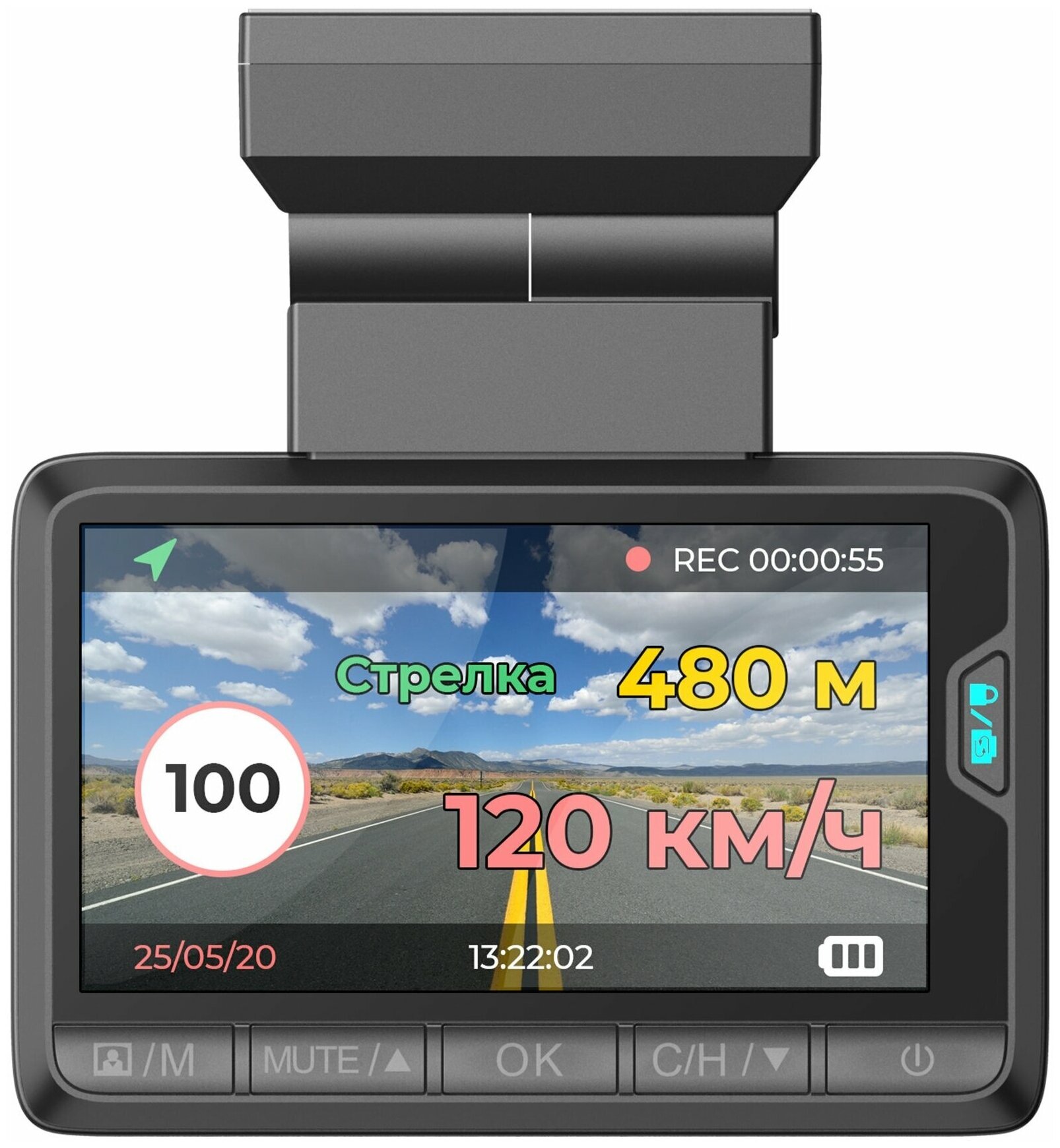 Magnetic mount, voice prompts, radar detector, speed control function
