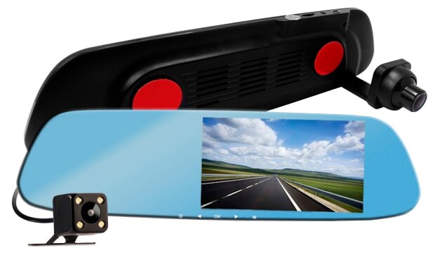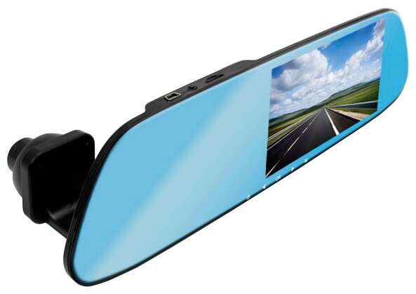 Design: rearview mirror, number of cameras: 2, shock sensor G-sensor, screen, viewing angle diagonal: 170 °, built-in microphone, recording mode: cyclic, processor: MStar MSC8328, motion detection in the frame, time and date recording