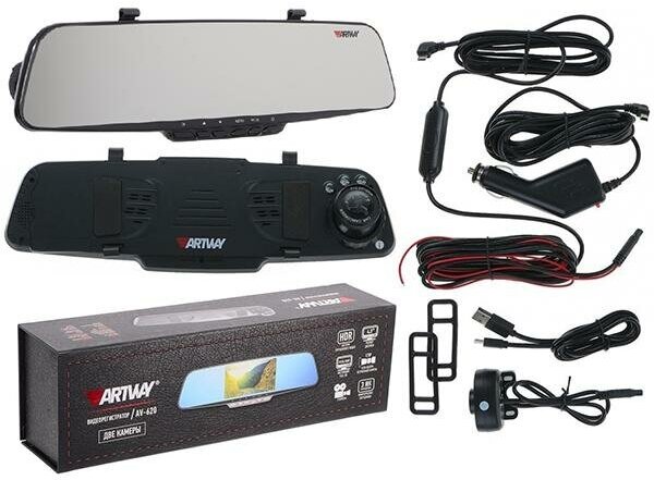Max. video recording resolution: 1920×1080, design: rearview mirror, number of cameras: 2, shock sensor G-sensor, screen, viewing angle diagonal: 170 °, built-in microphone, recording mode: cyclic, processor: Allwinner V3, event recording in a separate fi