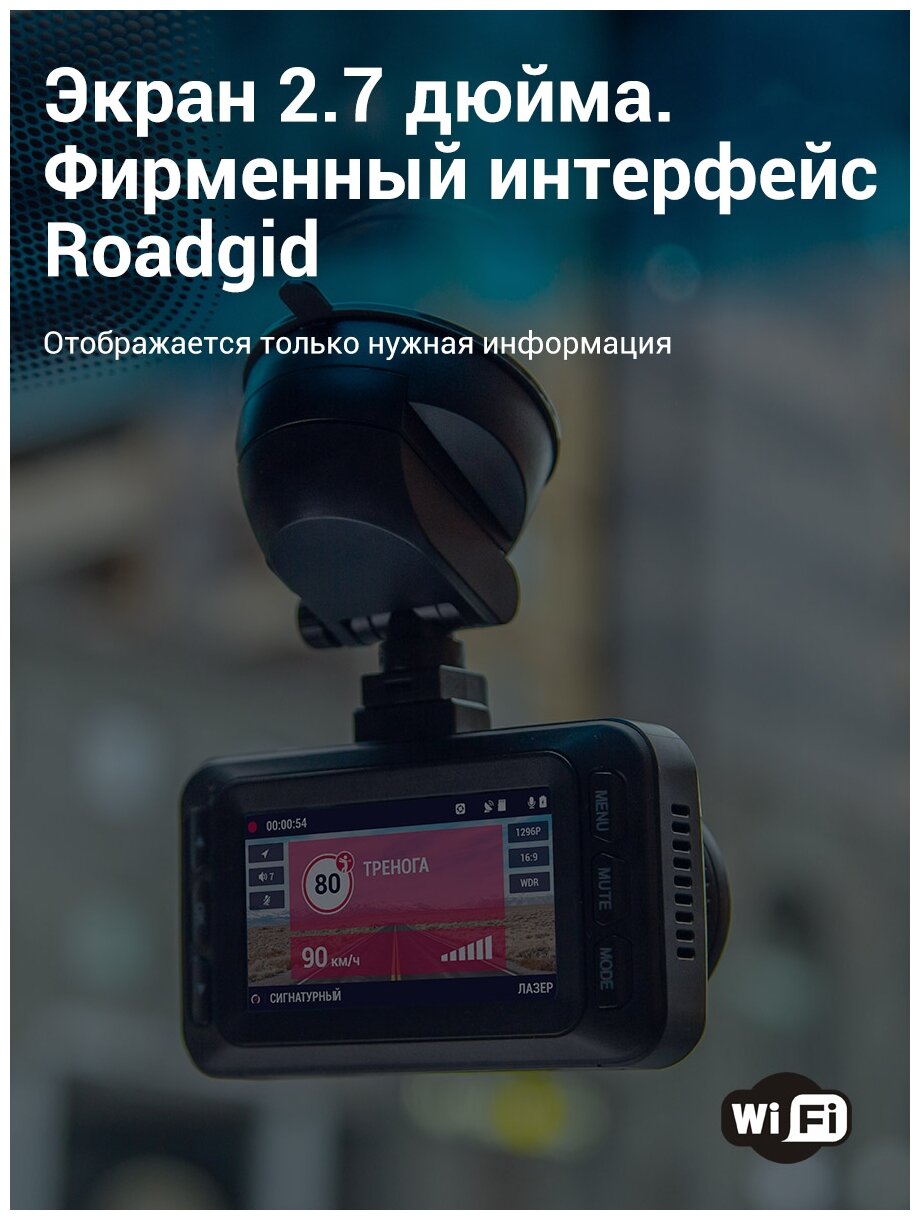 Radar detector, speedcam, max. video recording resolution: 1920 × 1080, design: normal, number of cameras: 1, G-sensor shock sensor, screen, diagonal viewing angle: 170 °, GLONASS, built-in microphone, Wi-Fi, recording mode: cyclic, event recording to a s