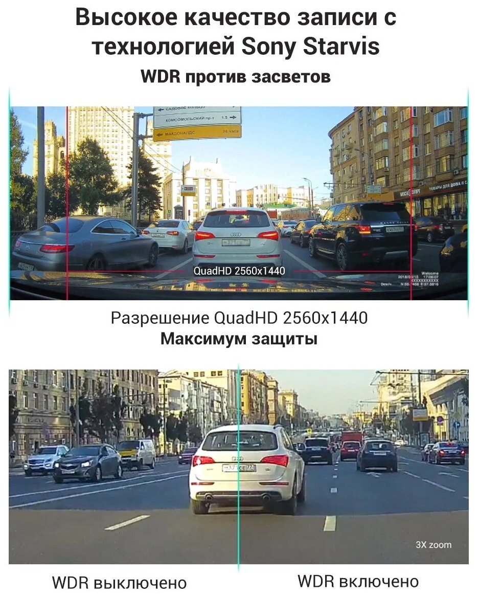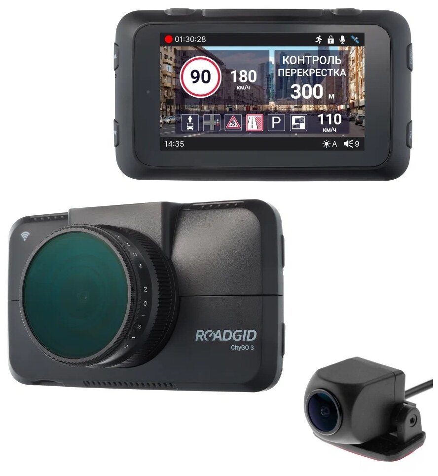 Speedcam, GPS, max. video recording resolution: 1920×1080, 2560×1440, design: conventional, number of cameras: 2, shock sensor G-sensor, screen, viewing angle diagonal: 170 °, built-in microphone, Wi-Fi, recording mode: cyclic, processor: Novatek NTK 9667