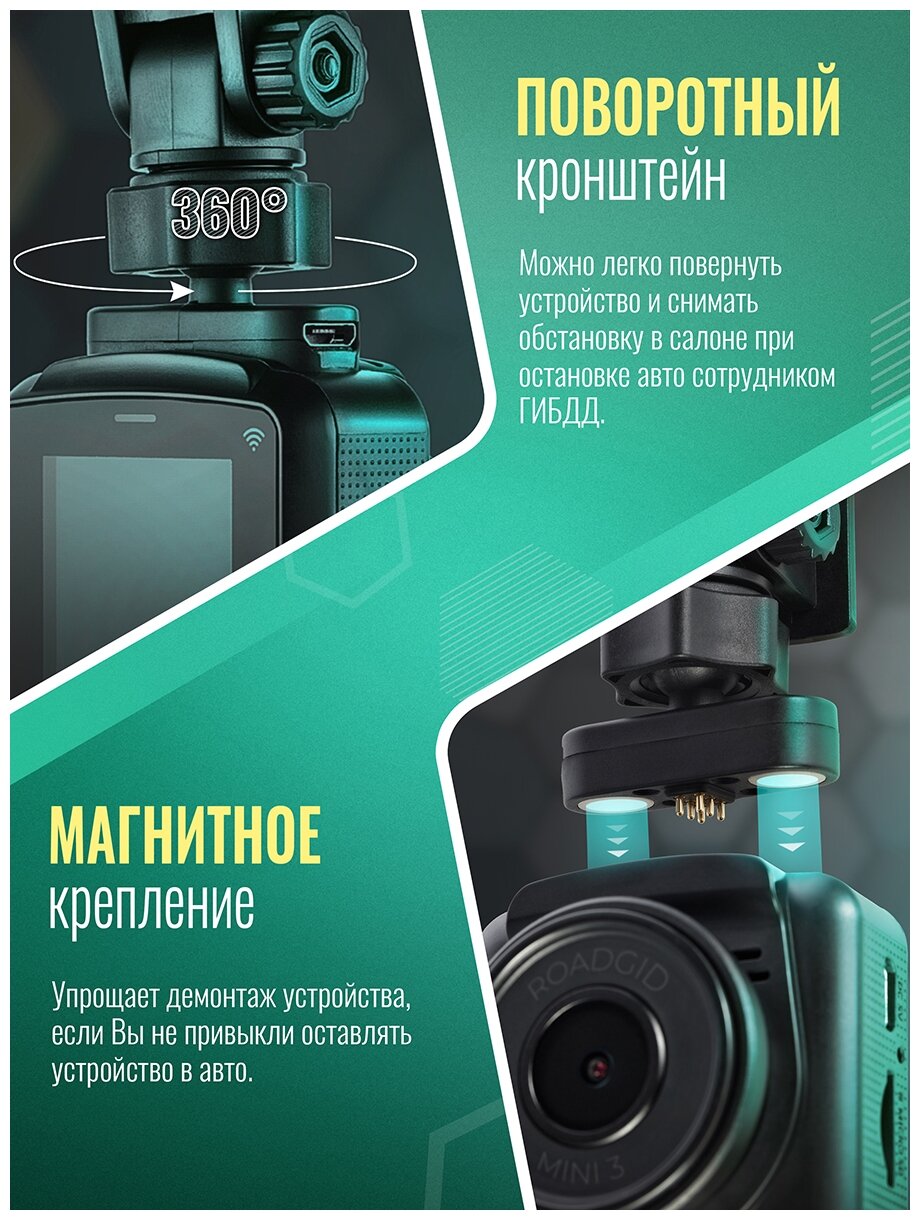 Fastening on glass - adhesive tape 3M; power adapter with an additional USB connector included, used to charge a smartphone or tablet; auto start recording, shutdown by timer