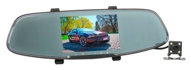 Max. video recording resolution: 2304×1296, design: rearview mirror, number of cameras: 2, shock sensor G-sensor, screen, viewing angle diagonal: 170 °, built-in microphone, recording mode: cyclic, processor: AIT8328P, event recording to a separate file ,