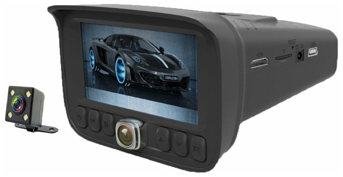 Radar detector, max. video recording resolution: 1920×1080, design: normal, number of cameras: 3, shock sensor G-sensor, screen, viewing angle diagonal: 140 °, built-in microphone, recording mode: cyclic, processor: Novatek NT 96658, night mode, time reco
