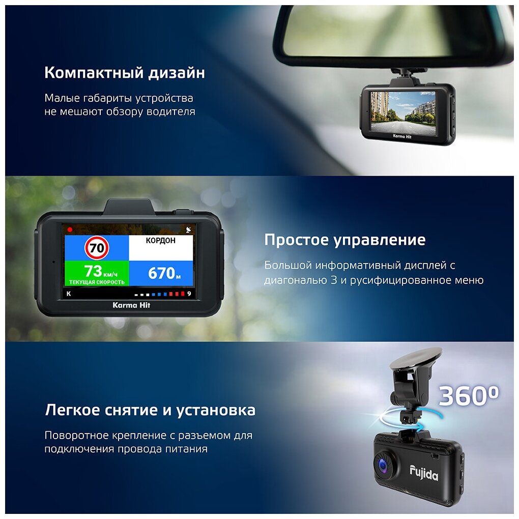 Radar detector, speedcam, GPS, max. video recording resolution: 1920 × 1080, design: conventional, number of cameras: 1, shock sensor G-sensor, screen, viewing angle diagonal: 170 °, GLONASS, built-in microphone, recording mode: cyclic, processor: Mstar 8