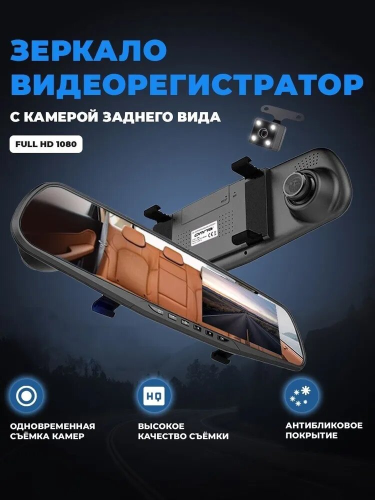 Design: rear view mirror, number of cameras: 2, time and date recording