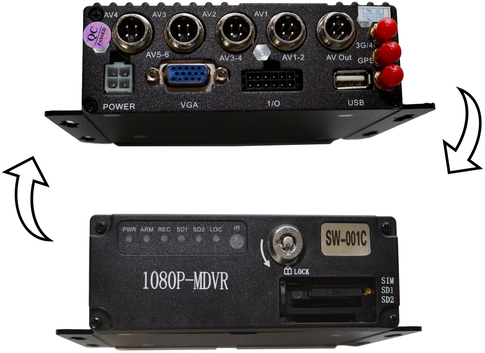 Two slots for SD memory cards up to 128GB, included - 3 connecting cables of 5 meters, 1 connecting cable of 20 meters, monitor mount, frame and panel mount, remote control, keys to the registrar