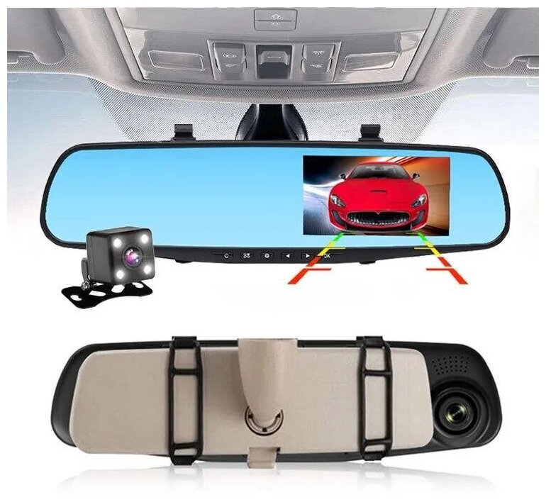 1 camera is on the mirror, the second is connected additionally by a separate module