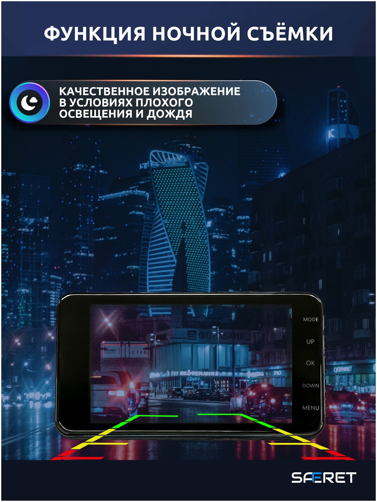Max. video recording resolution: 1920×1080, design: with screen and rear view camera, number of cameras: 2, G-sensor shock sensor, screen, diagonal viewing angle: 170 °, built-in microphone, recording mode: loop, night mode, time recording and dates