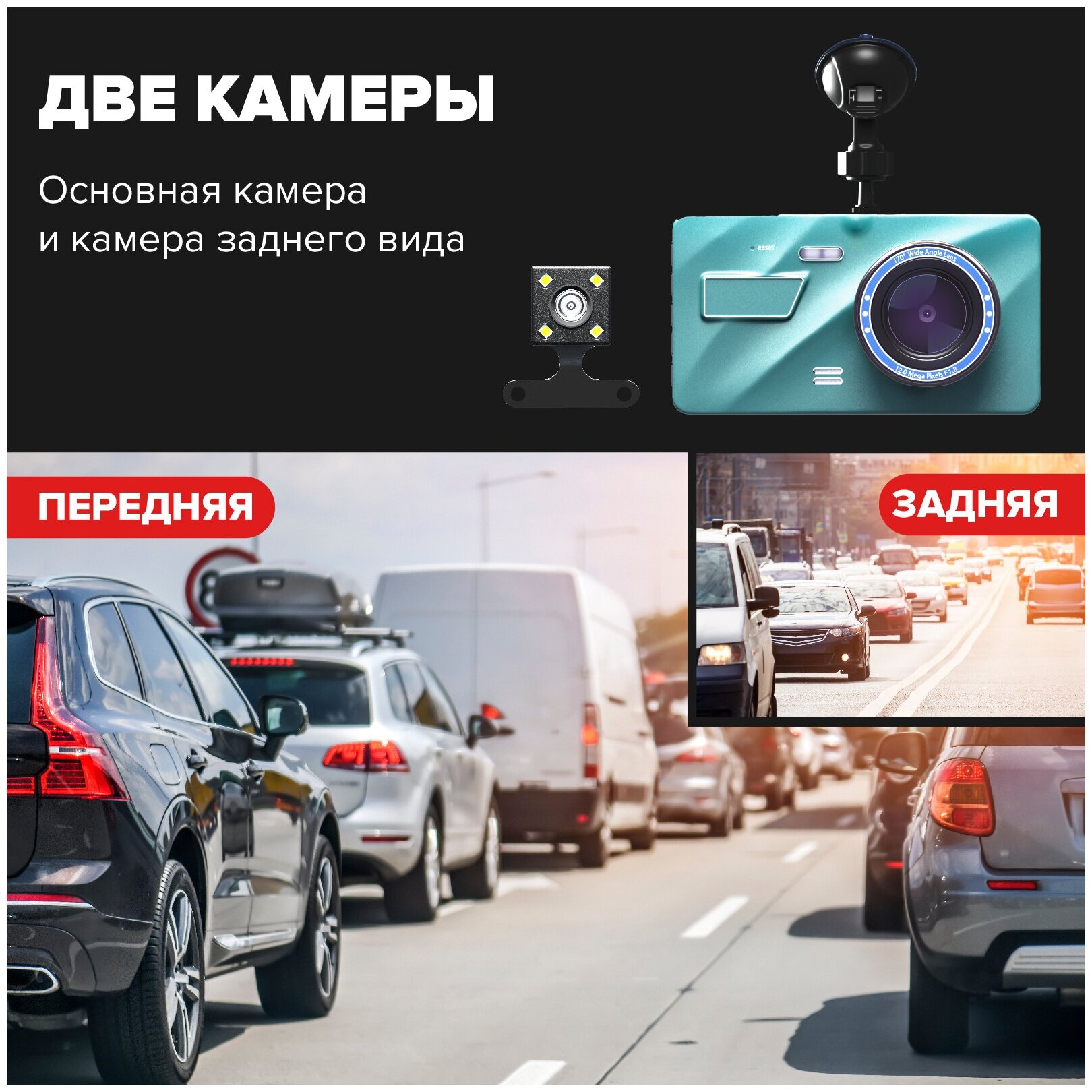 Max. video recording resolution: 1920×1080, design: conventional, number of cameras: 2, shock sensor G-sensor, screen, diagonal viewing angle: 170 °, built-in microphone, recording mode: loop, night mode, time and date recording