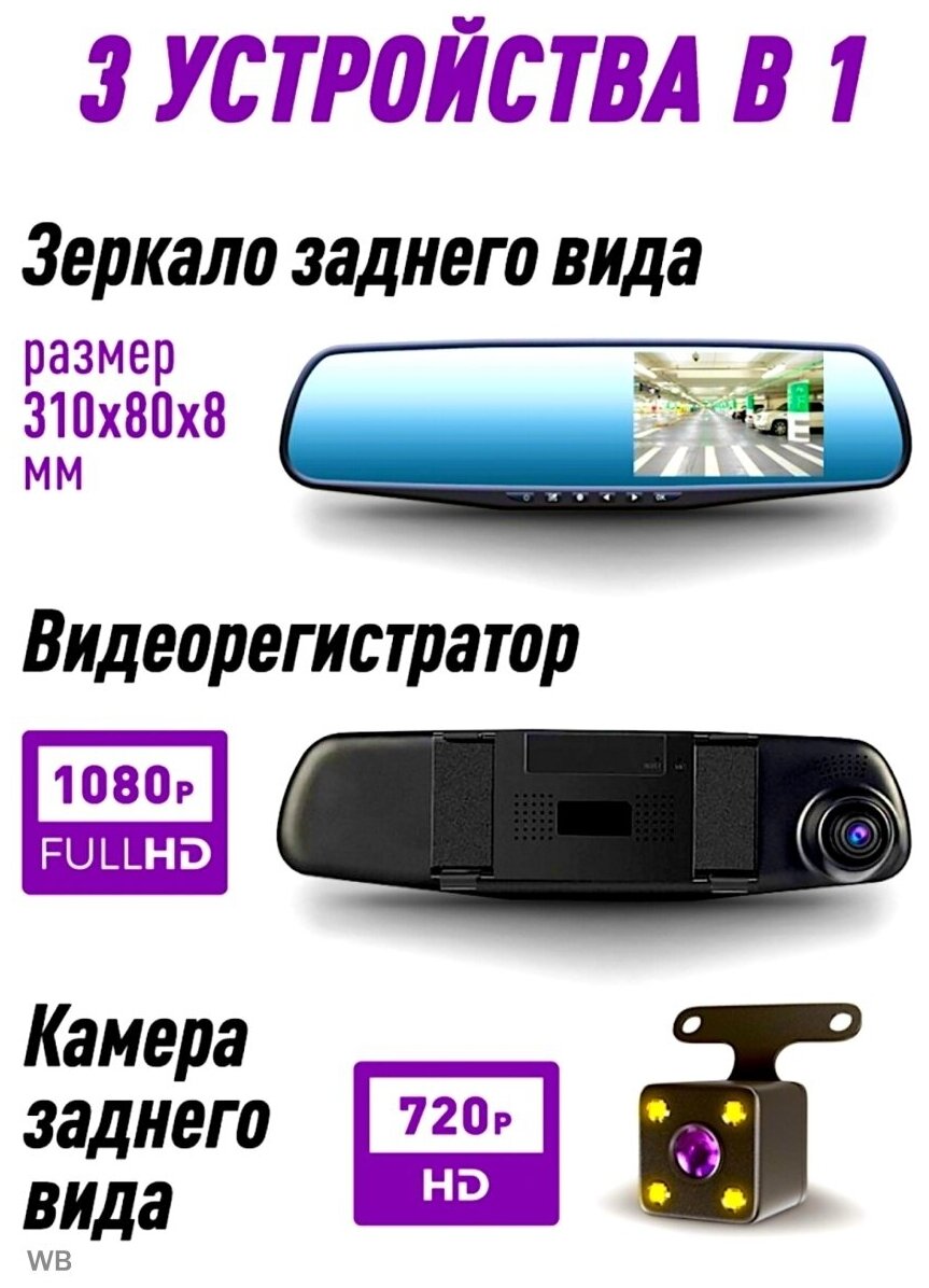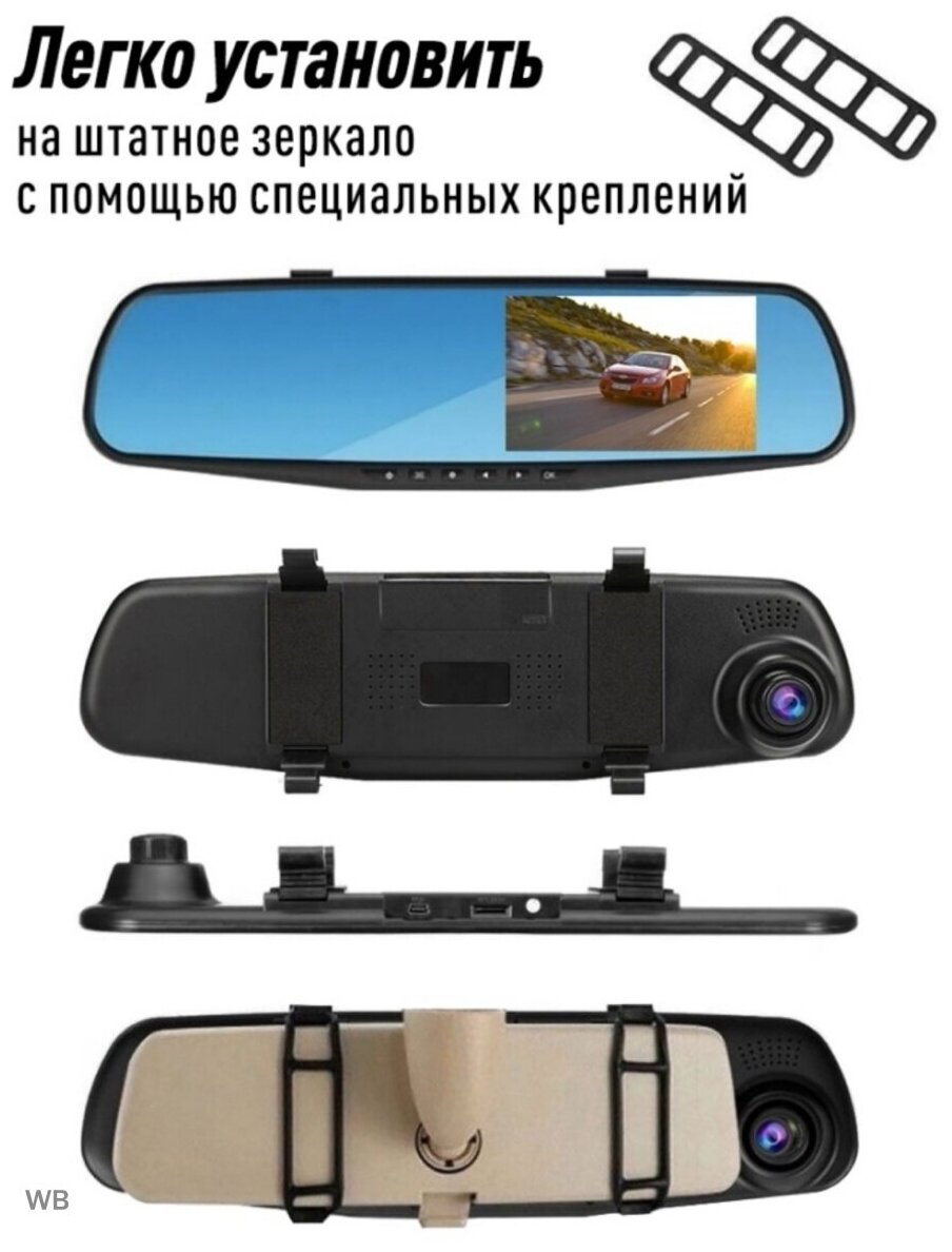 Max. video recording resolution: 1920×1080, design: rearview mirror, number of cameras: 2, shock sensor G-sensor, built-in microphone, recording mode: loop recording, time and date recording