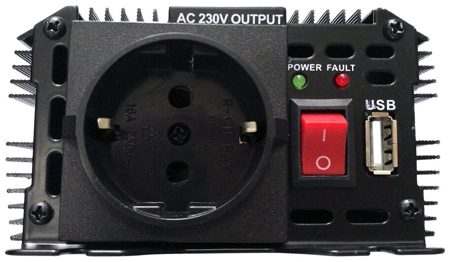 Inverter, 300 W, waveform: approximate sine wave, 1 USB, battery connection: cigarette lighter, input. voltage: 12V output. voltage: 220V, short circuit protection