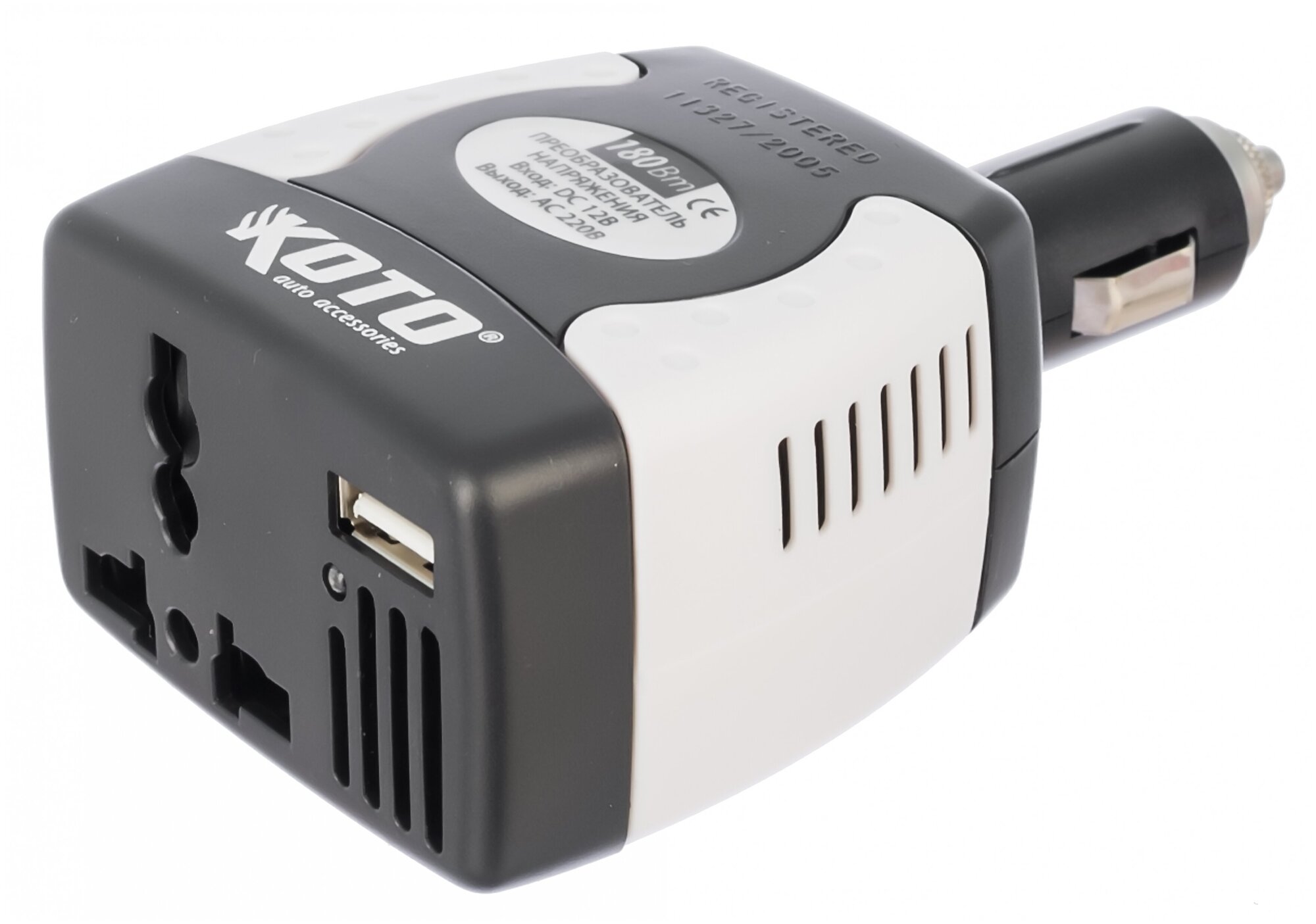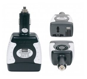 Inverter, 150 W, waveform: approximate sine wave, 1 USB, battery connection: cigarette lighter, input. voltage: 12V output. voltage: 220V, short circuit protection, overload protection
