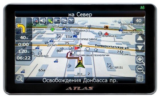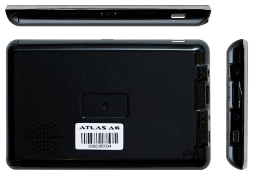 Atlas A5 car navigator, suction cup car mount, 220V charger, car cigarette lighter power adapter, USB cable, 3.5 mm stereo headphones, user manual in Russian, warranty card.
