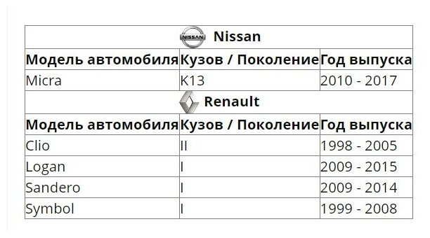Nissan Micra, Renault Clio, Renault Logan, Renault Sandero, Renault Symbol