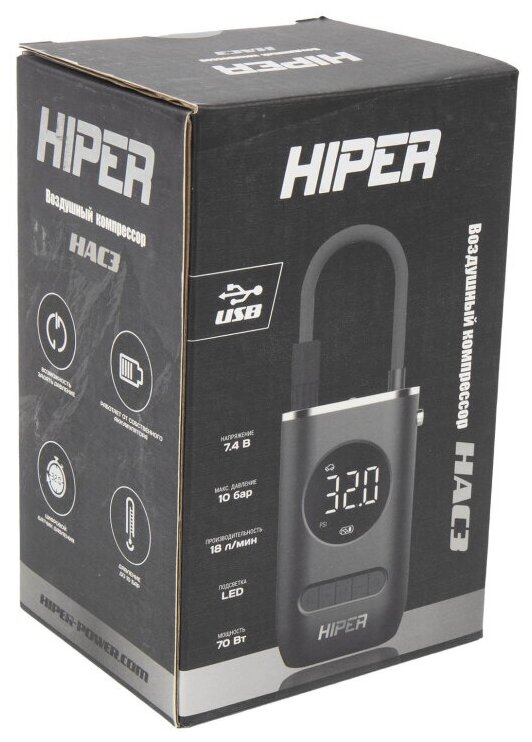 Car battery compressor HIPER HAC3 / 10 bar / 18 l. min / 2000 mAh / black