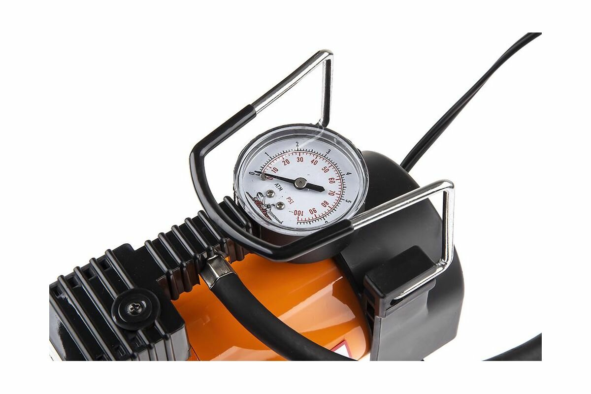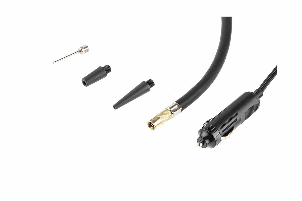 Power: from the cigarette lighter socket, from the battery terminals, voltage: 12 V, input capacity: 30 l/min, power: 196 W, maximum pressure: 7 atm, compressor type: piston, power cable length: 3 m, air length