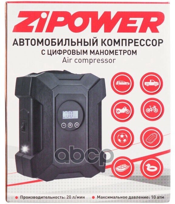 ZIPOWER PM6525, 20l/min, 12V, from cigarette lighter, up to 10atm with digital pressure gauge
