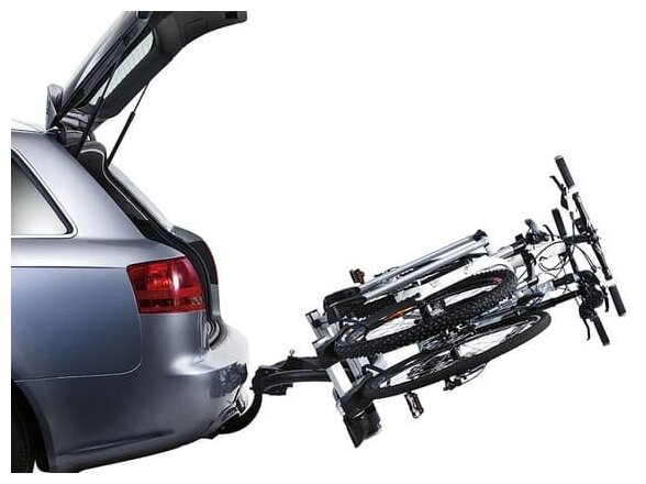 Attachment point: towbar, purpose: bicycles, load capacity: 51 kg, number of bicycles: 2, bicycle attachment: frame + wheel, lock, tail lights, folding mechanism