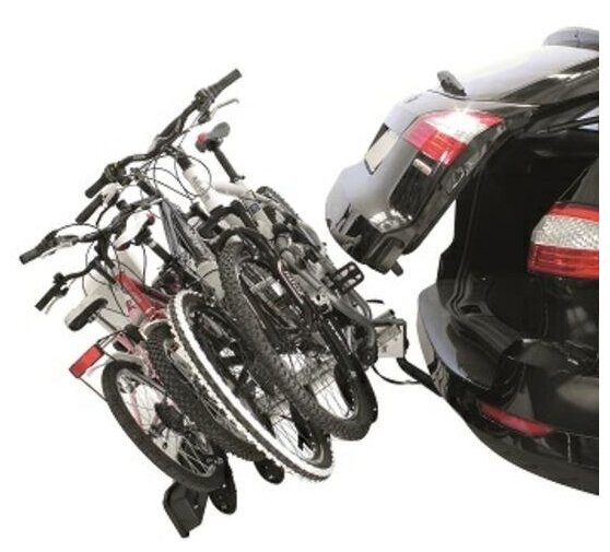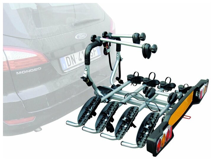 Attachment point: towbar, purpose: bicycles, load capacity: 60 kg, number of bicycles: 4, bicycle attachment: frame + wheel, lock, tail lights, folding mechanism
