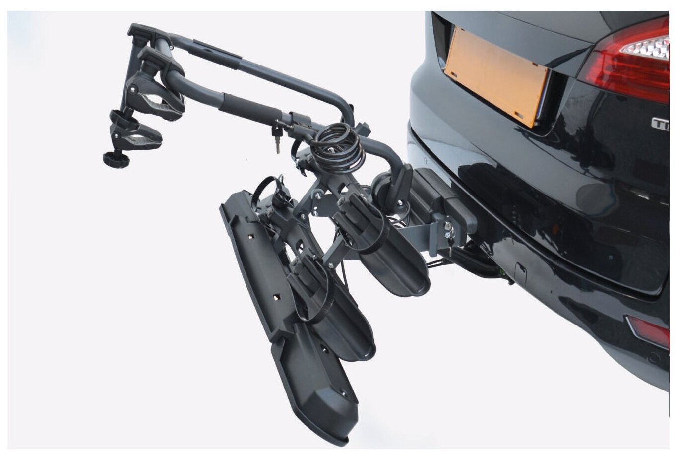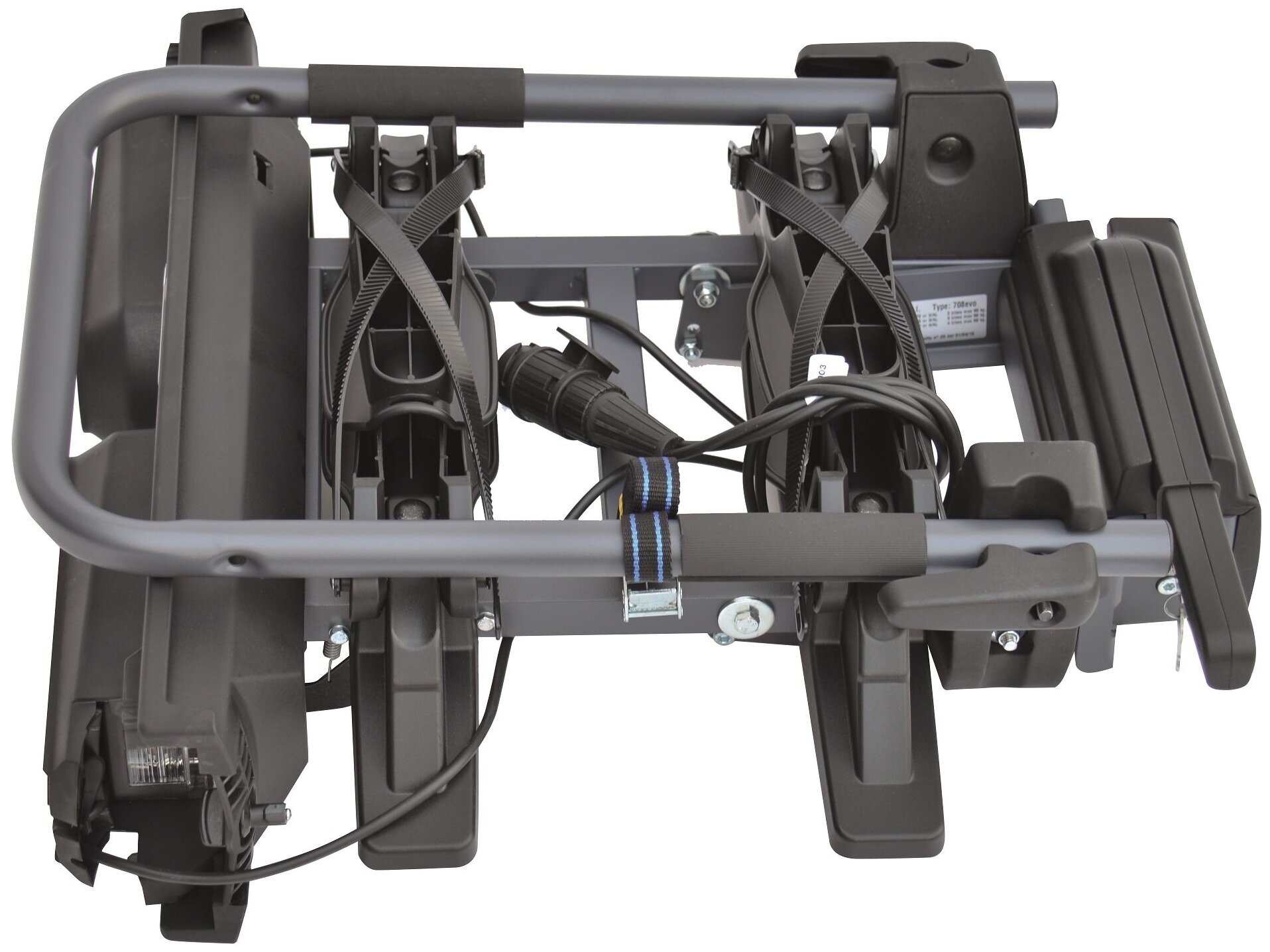 Attachment point: towbar, purpose: bicycles, load capacity: 60 kg, number of bicycles: 2, bicycle attachment: frame + wheel, lock, tail lights