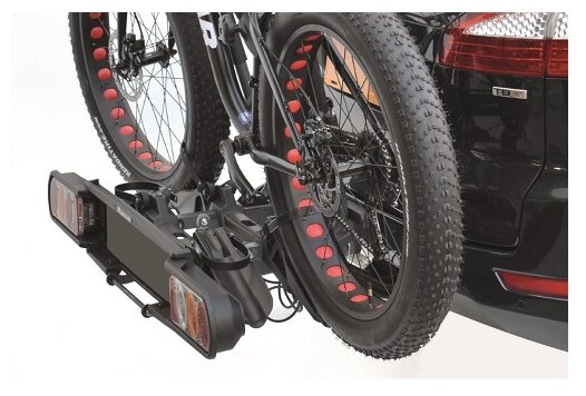 Attachment point: towbar, purpose: bicycles, load capacity: 60 kg, number of bicycles: 4, bicycle attachment: frame + wheel, lock, tail lights, folding mechanism
