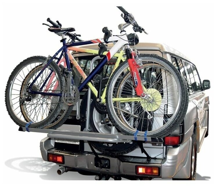 Attachment point: spare wheel, purpose: bicycles, load capacity: 45 kg, number of bicycles: 3, bicycle attachment: frame + wheel
