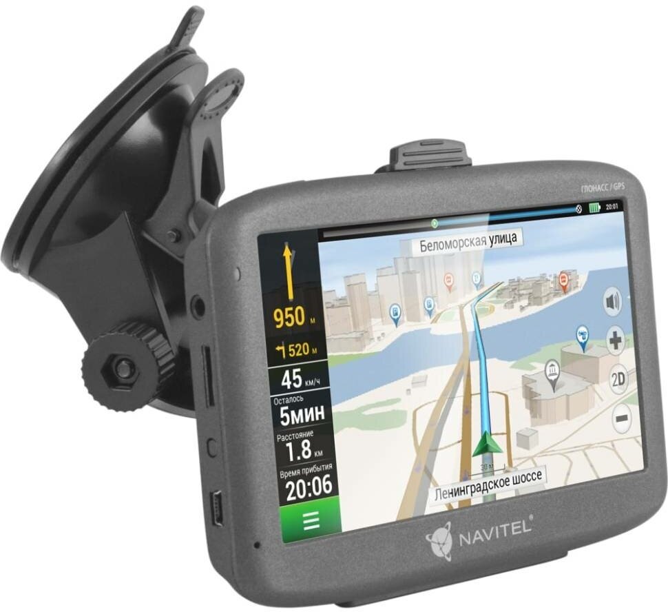 Type: portable, scope: automotive, screen diagonal: 5 ", software: Navitel, operating system: Windows CE 6.0, navigation system: GLONASS, display: LCD-color, touchscreen, functions: map loading, slot for memory cards : micro SD, connectors and interfaces:
