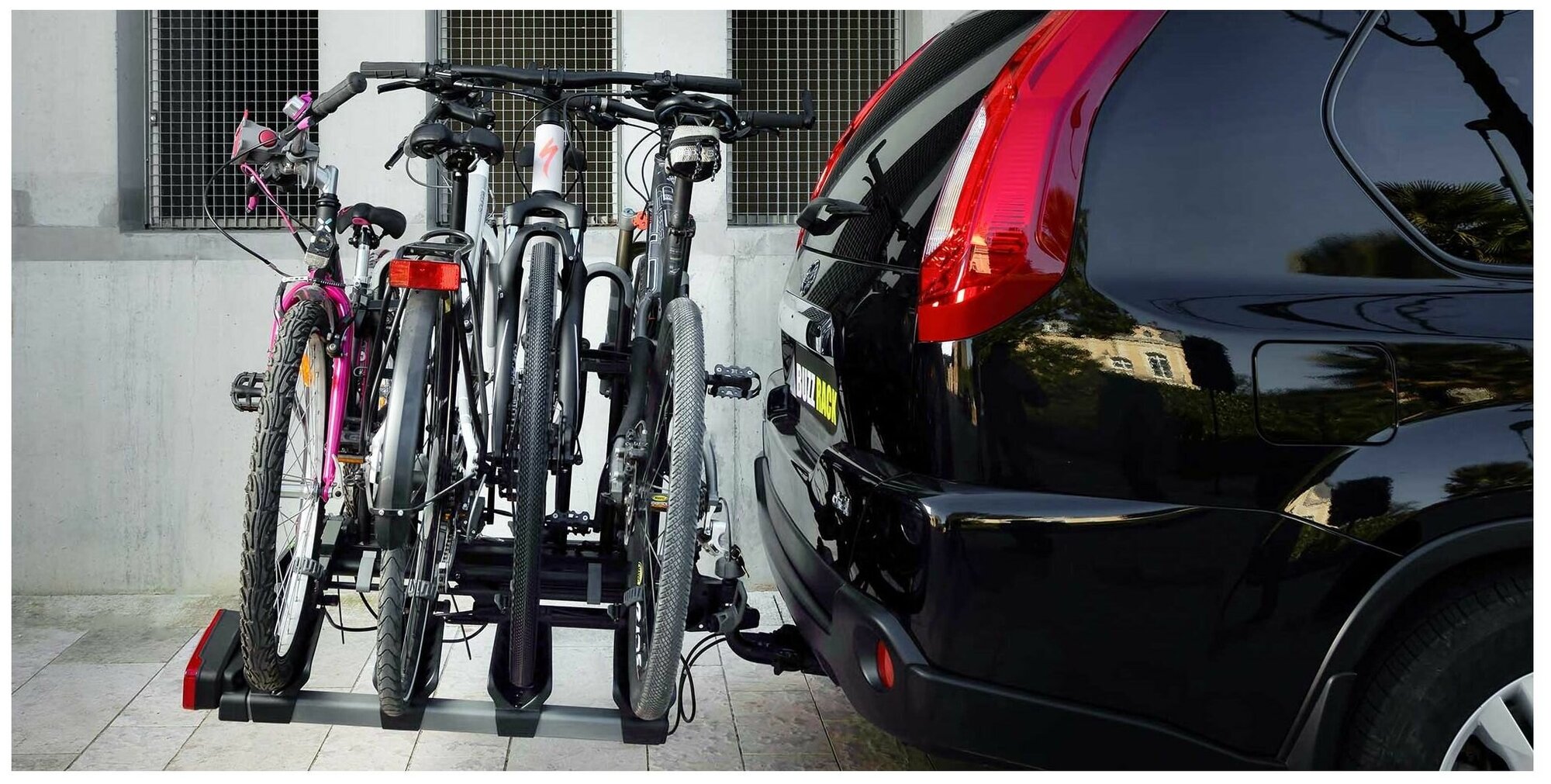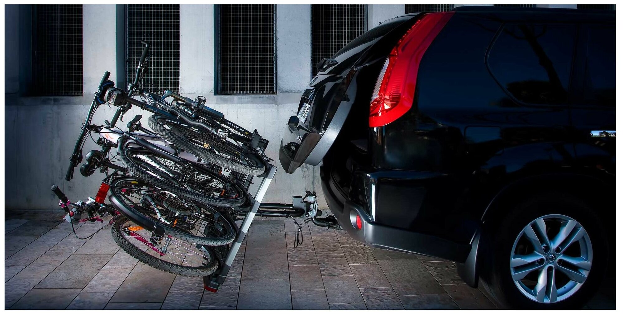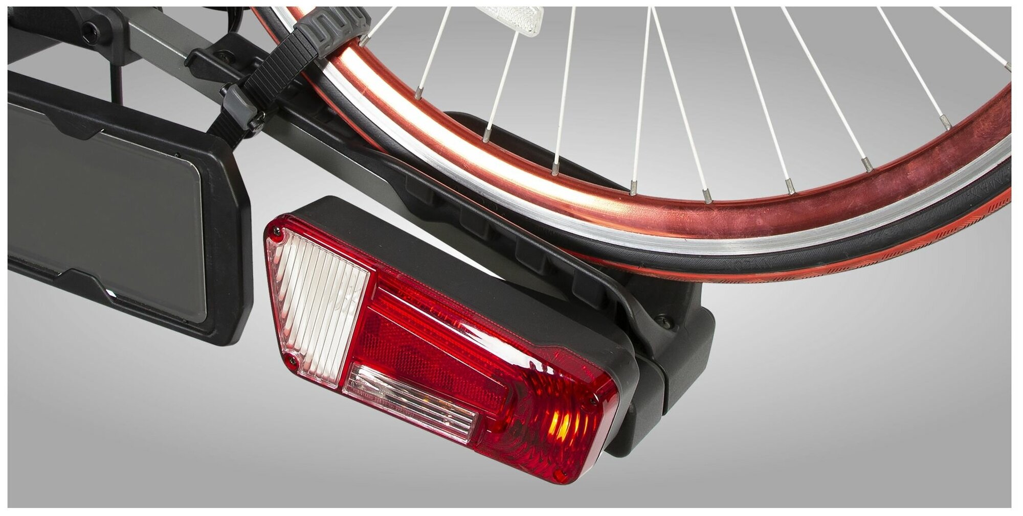 Attachment point: towbar, purpose: bicycles, load capacity: 60 kg, number of bicycles: 4, bicycle attachment: frame + wheel, lock, tail lights, folding mechanism