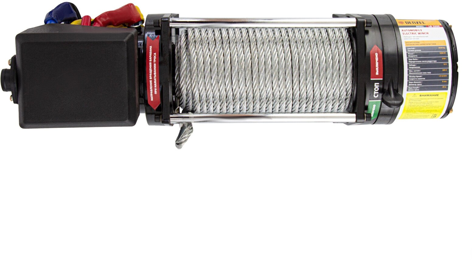 Winch type: winch, electric, car winch, car winch, pulling force: 3630 kg, included in the kit: hook, winch, cable, cable: steel, cable length: 29 m, cable diameter: 8 mm
