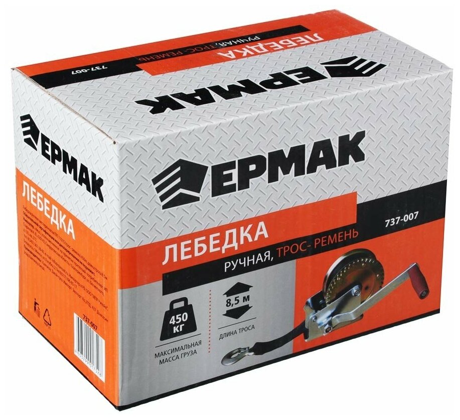 Ermak Manual gear winch TRT 1101S cable - belt 450kg, cable length 8.5m