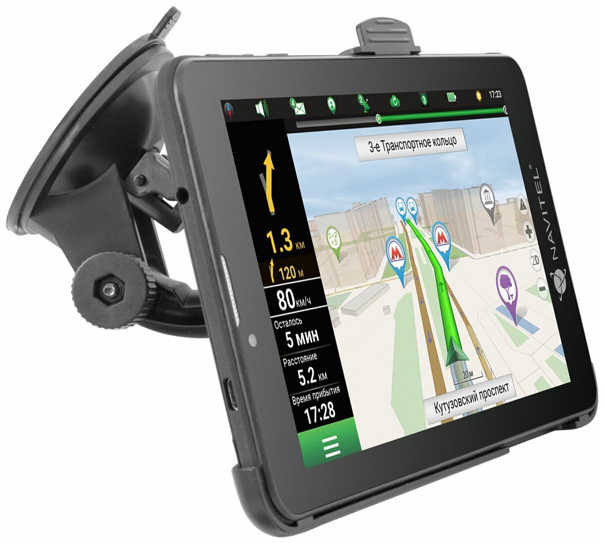 Type: portable, scope: automotive, screen diagonal: 7", software: Navitel, operating system: Android 7.0, number of routes: 3, wireless: Bluetooth, GSM/GPRS module, Wi-Fi, display: LCD- color, touchscreen, functions: map download, traffic jam download, me