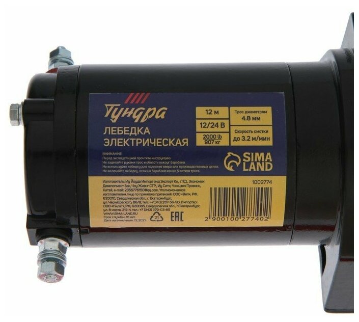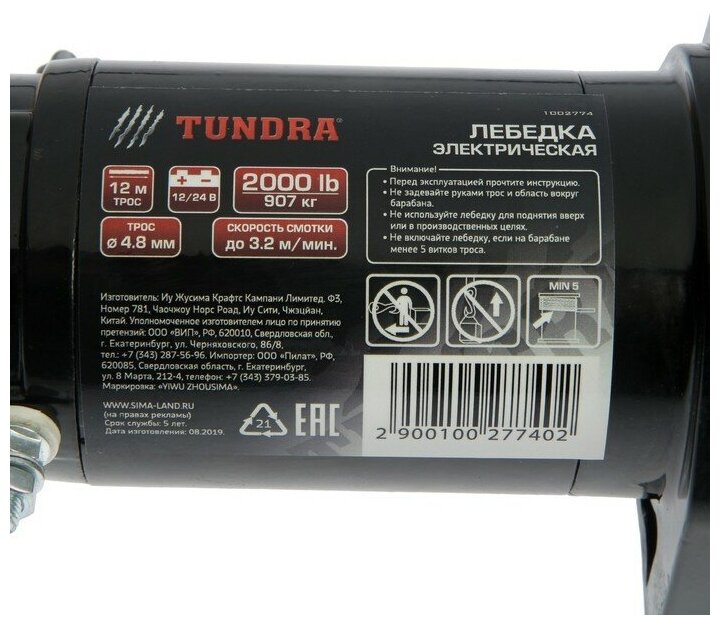 TUNDRA TUNDRA, 12/24V, 2000 lb 0.9 t, 1 hp, up to 3.2 m/min, 4.8 mm x 12 m