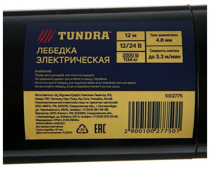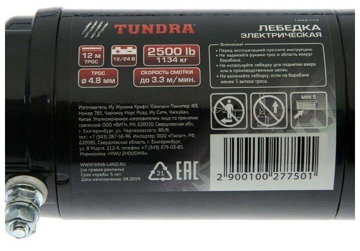 TUNDRA TUNDRA, 12/24V, 2500 lb 1.1 t, 1.2 hp, up to 3.3 m/min, 4.8 mm x 12 m