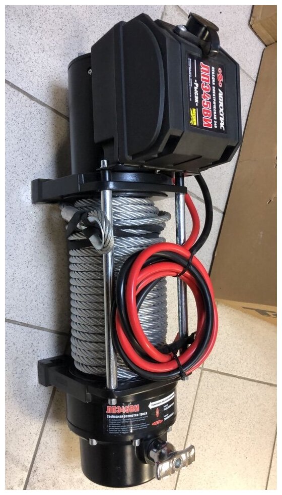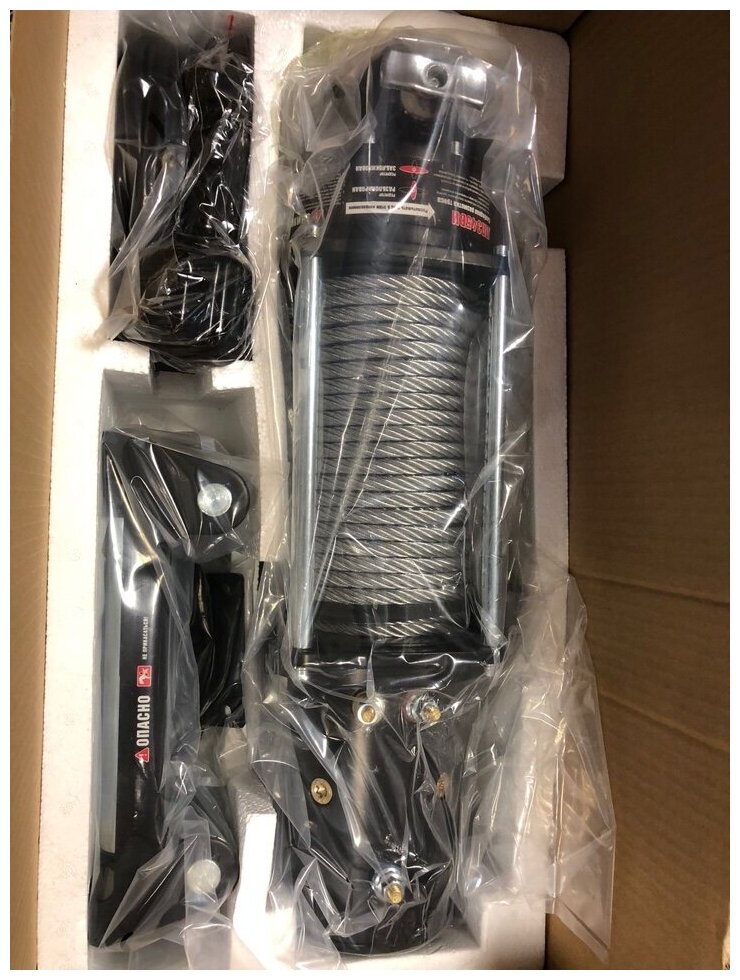 Winch type: winch, electric, pulling force: 10000 kg, included in the kit: hook, winch, remote control, guide rollers, cable, cable: steel, cable length: 26 m, cable diameter: 9.20 mm, gear ratio: 196 :1, view