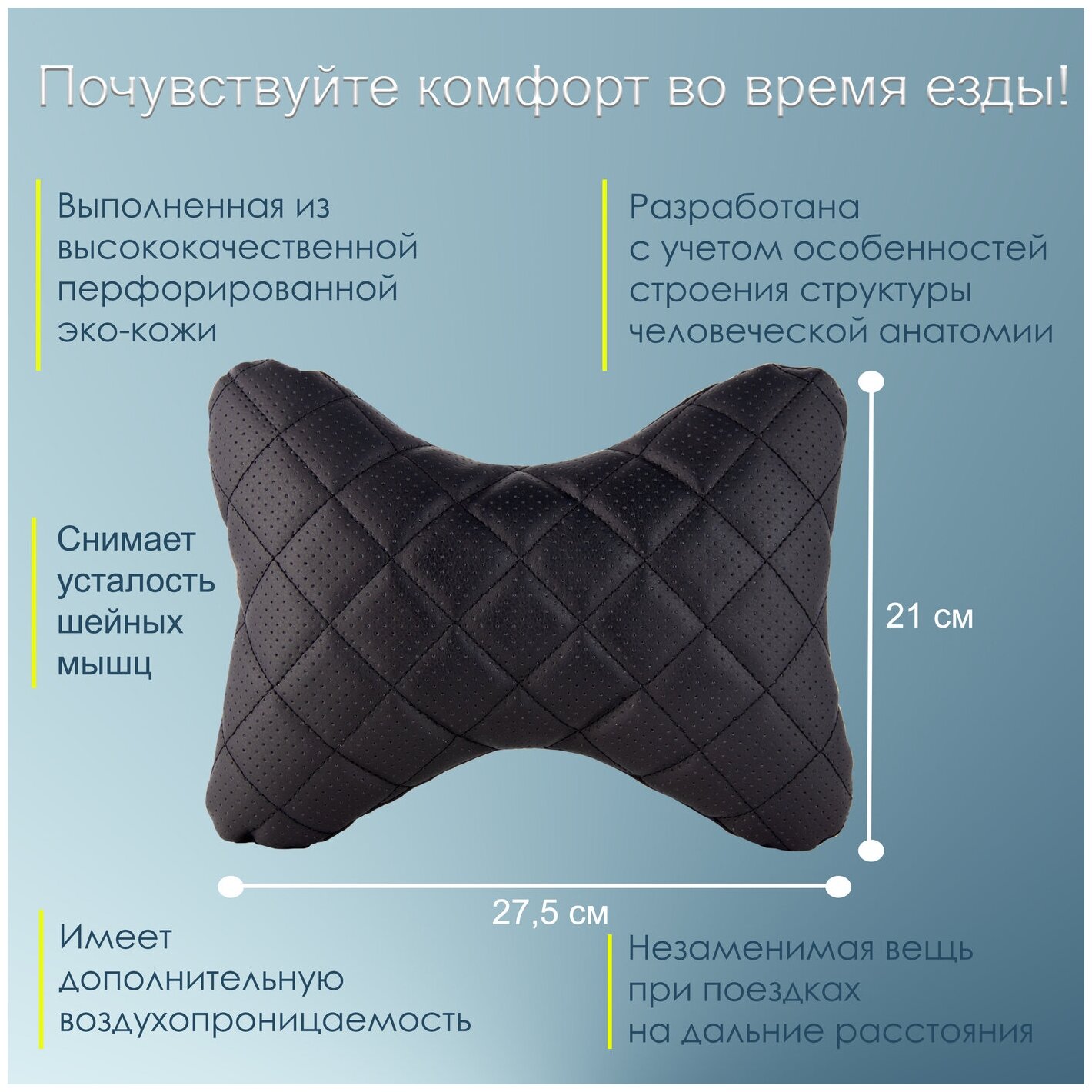 Purpose: for headrest, length: 30 cm, width: 7.80 cm, cover material: artificial leather, perforated, filling material: padding polyester, holofiber, padding polyester, features: anatomical, perforated