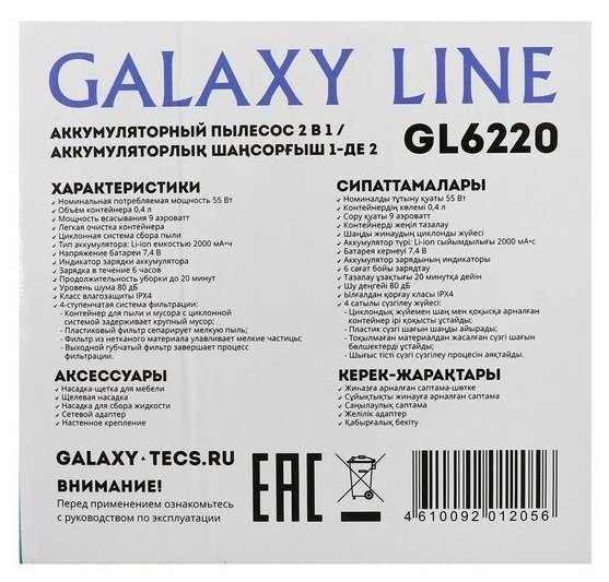 Galaxy LINE GL 6220, manual, 55 W, 400 ml, wireless, white-black