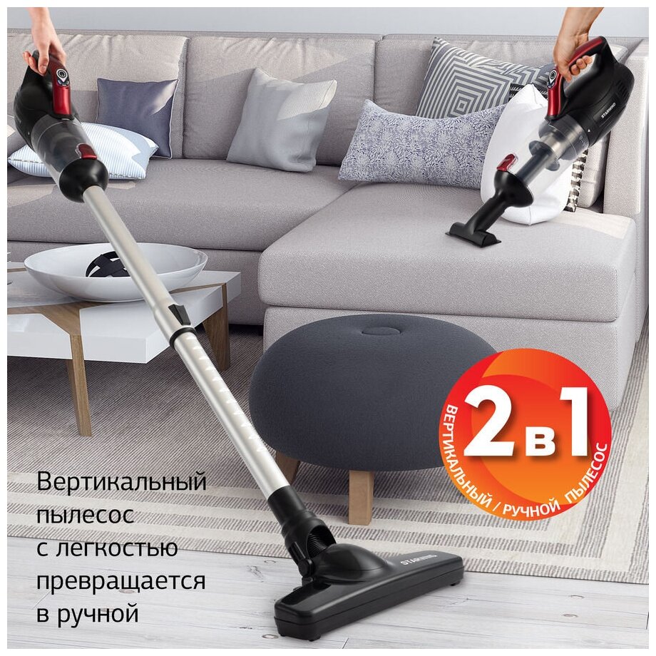 Cleaning type: dry, power type: battery, detachable hand vacuum cleaner, equipment: nozzle for upholstered furniture, power adapter, documentation, charging station, set of nozzles, brush for cleaning accessories, high