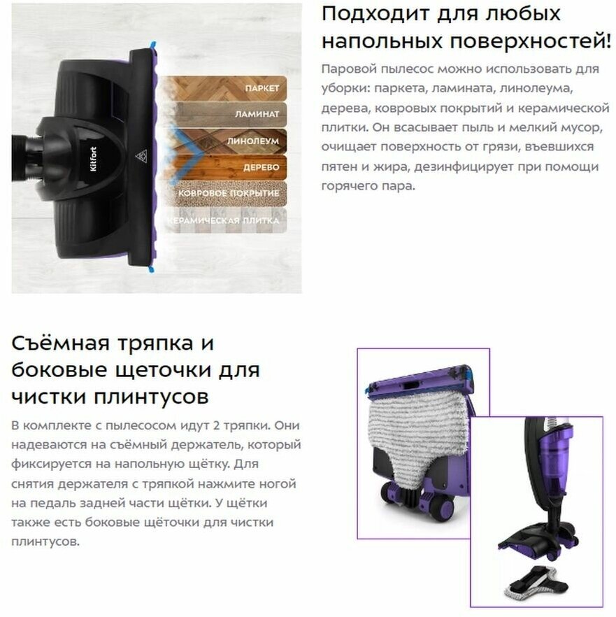 Cleaning type: wet, dry, power supply: mains supply, equipment: steam nozzle, additional functions: steam supply, design features: vertical parking, power regulator on the body, height: 120 cm, in