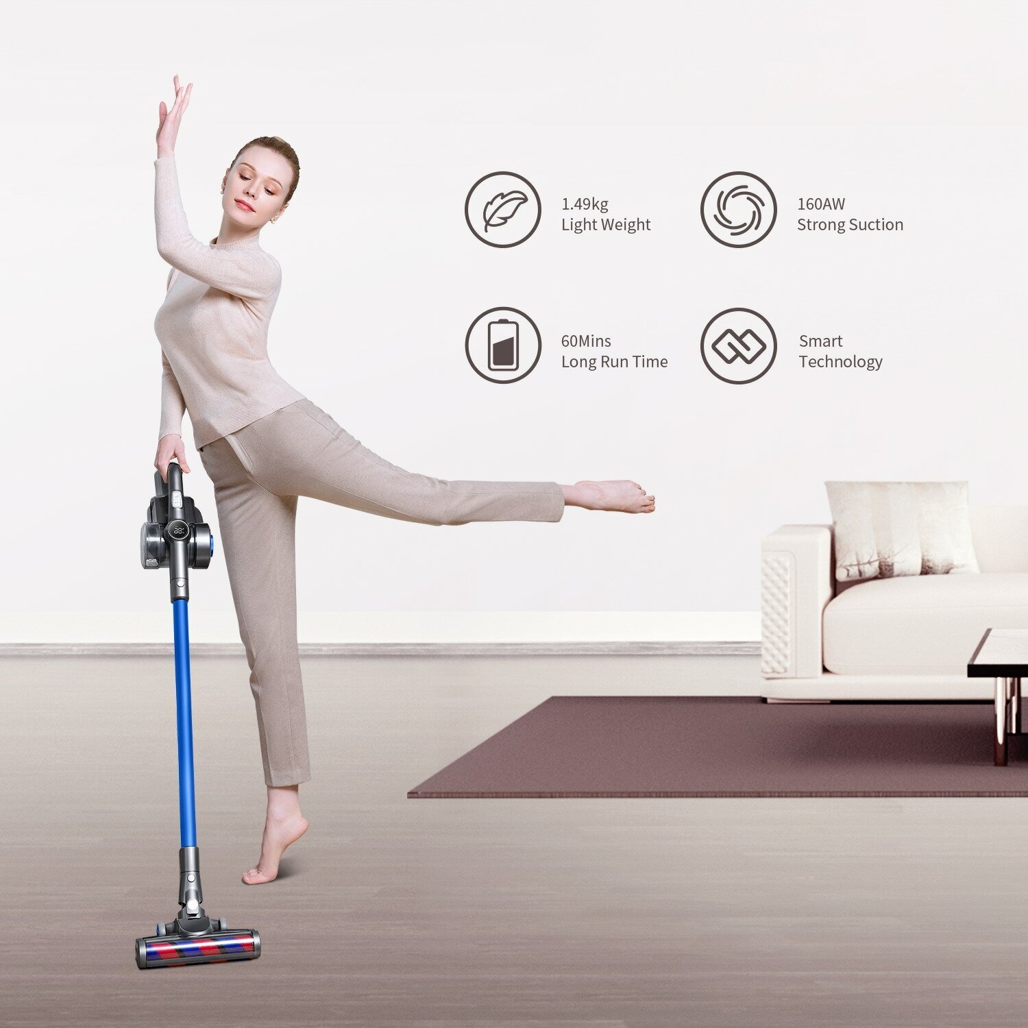 Cleaning type: dry, power supply: battery, battery life: 60 min, battery type included: Li-Ion, detachable hand vacuum cleaner, accessories: crevice nozzle, electric brush, additional functions: