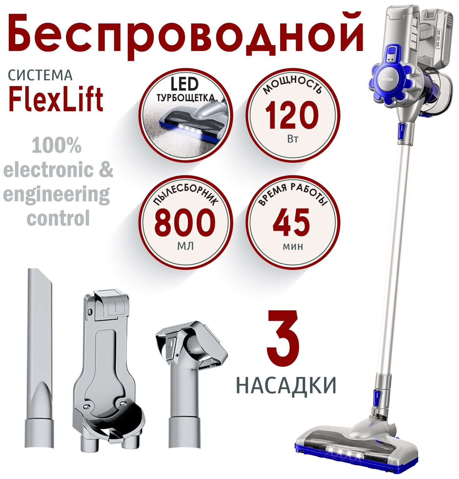 Cleaning type: dry, power supply: battery, battery life: 45 min, battery type included: Li-Ion, detachable hand vacuum cleaner, accessories: turbo brush, crevice nozzle, additional functions: during
