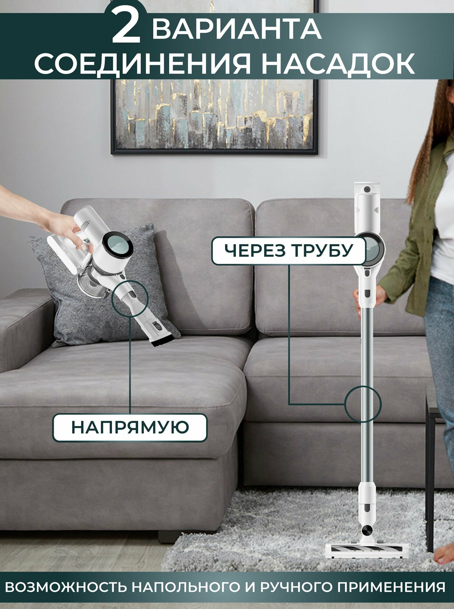 Working time: normal mode 35 minutes, turbo mode 20 minutes; complete set: main brush 1 pc, vacuum cleaner 1 pc, handle 1 pc, crevice brush 1 pc, brush 2in1 1 pc, adapter 1 pc, instruction 1 pc