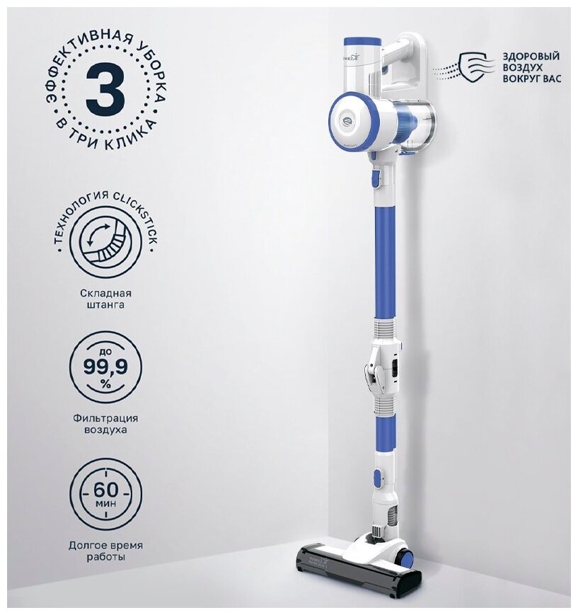 Cleaning type: dry, power type: battery, battery life: 60 min, battery type included: Li-Ion, additional functions: the ability to connect an electric brush, cleaning area lighting, features to