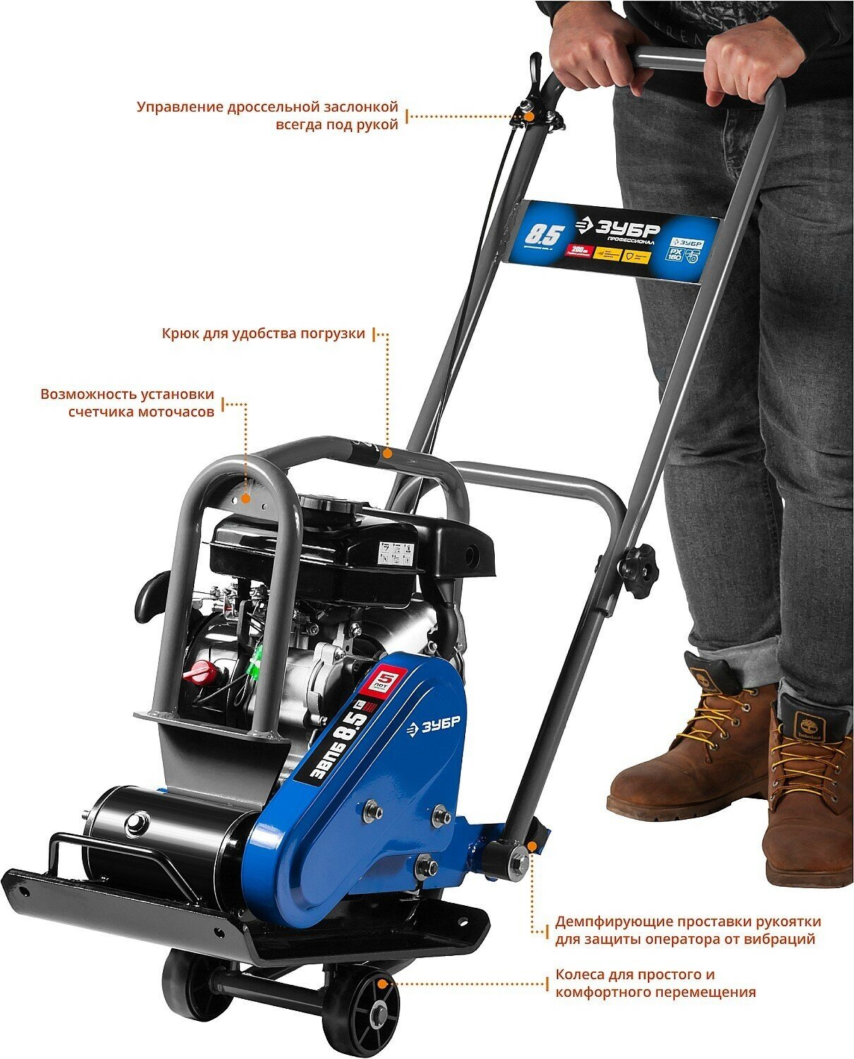 Engine: gasoline, type: vibrating plate, power: 1.80 kW, engine power: 2.50 hp, sole length: 430 mm, sole width: 310 mm, compaction area: 350 m²/h, compaction depth: 200 mm, stroke engine: four stroke