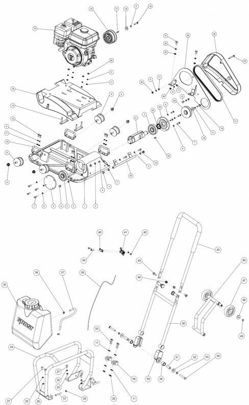 Engine: gasoline, type: vibration plate, power: 4 kW, engine power: 4.80 hp, sole length: 590 mm, sole width: 490 mm, compaction depth: 350 mm, engine cycle: four-stroke