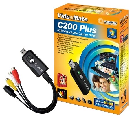 VideoMate C200 Plus; CD with drivers and software CyberLink PowerDirector 7 DE; Audio video cable; USB cable; Management