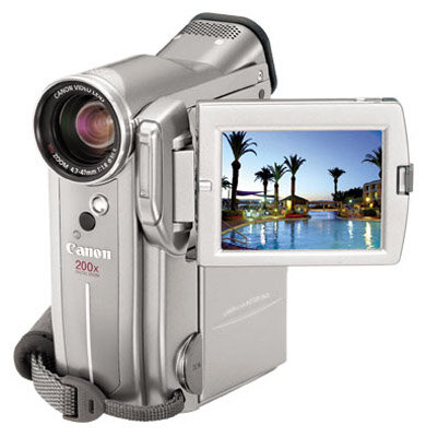 MiniDV, 1/3.4", 1CCD, photo mode, zoom 10x/200x, color viewfinder, MMC, SD, 102x52x118 mm, 450 g