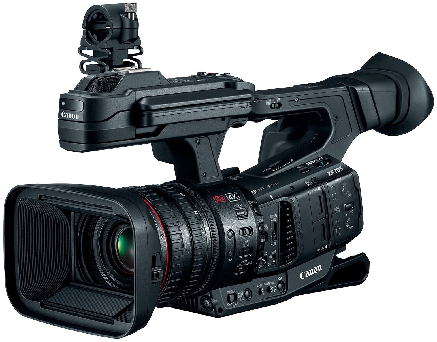 Shoulder rest, lens hood with shutter, BP-A30 battery pack, CG-A20 battery charger, CA-CP200 L AC adapter, microphone holder, eyecup, WL-D6000 wireless remote control, SS-1200 shoulder strap