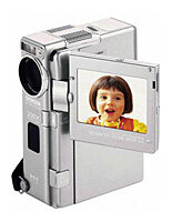 MiniDV, 1/4", 1CCD, photo mode, zoom 10x/200x, color viewfinder, MMC, 89x48x119 mm, 445 g